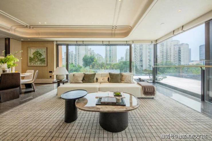 难得的是,项目外立面采用大尺度的全超白高透钢化夹层玻璃打造,光是单块玻璃就重达2.5吨, 部分户型约12米连续无柱化设计,搭配270°转角全景视野,呈现出入画般的视野纵深