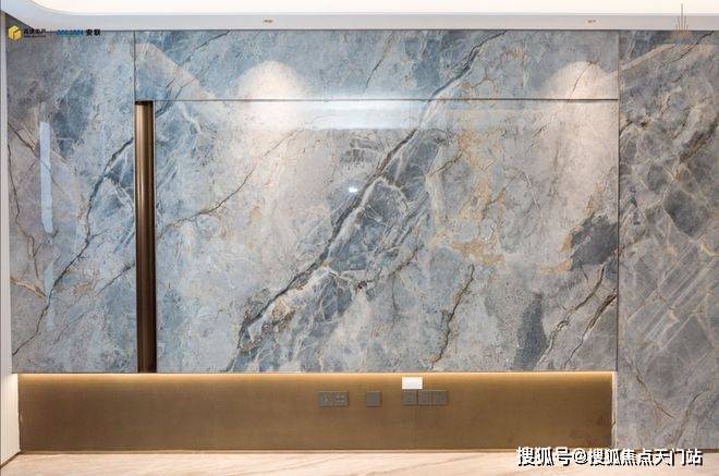 客厅巨幅背景墙, 大理石花纹做到了方向上的统一, 这对施工品质的要求非常高。