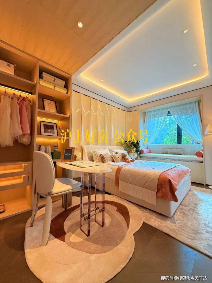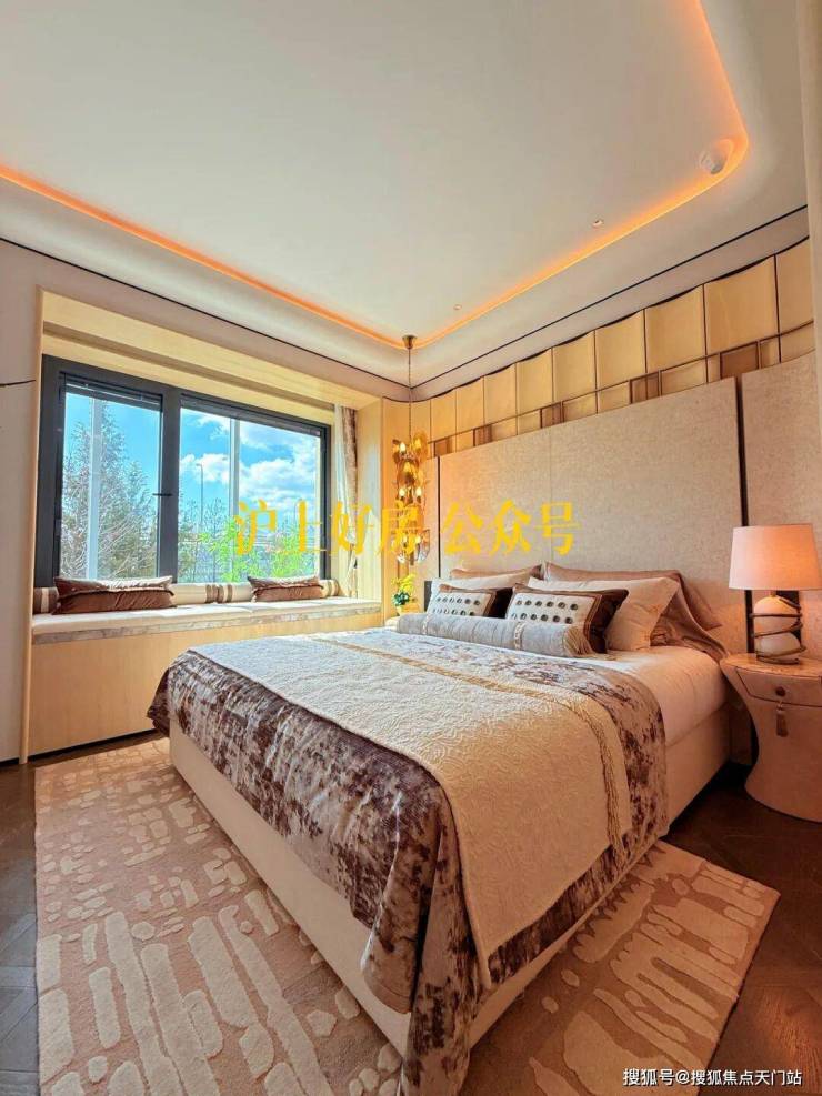 这可能是我见过弧形元素最多的样板间,吊顶、客厅墙面及卧室背景墙均采用大量曲面处理,涵盖木饰面与奢石等多种材质弧形工艺,即便工序复杂且成本高昂,但绿城仍坚持落实,只为业主更高级的使用体验