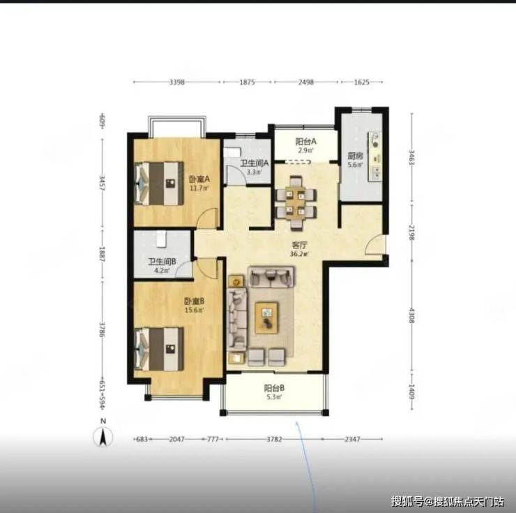 5号1202室建面约143.85m²3房,总价11223896元