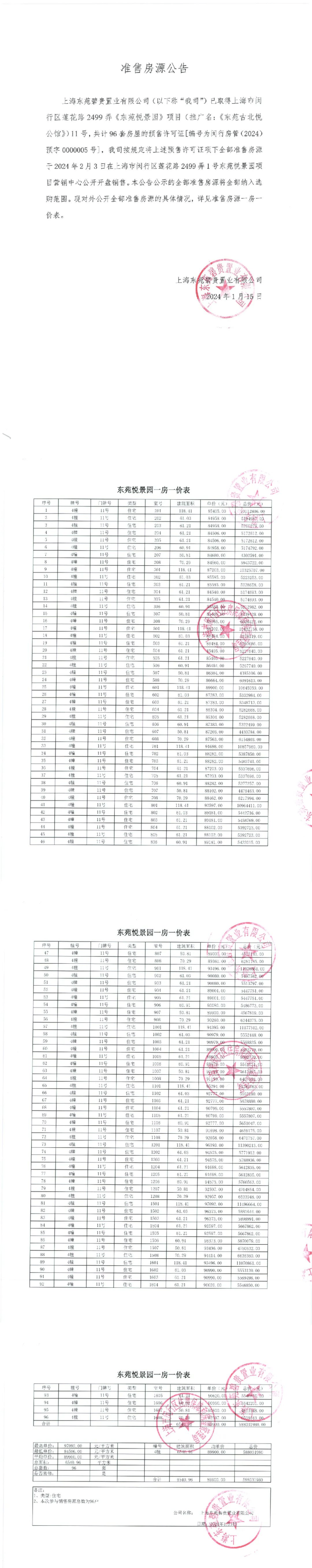最新一房一价表: