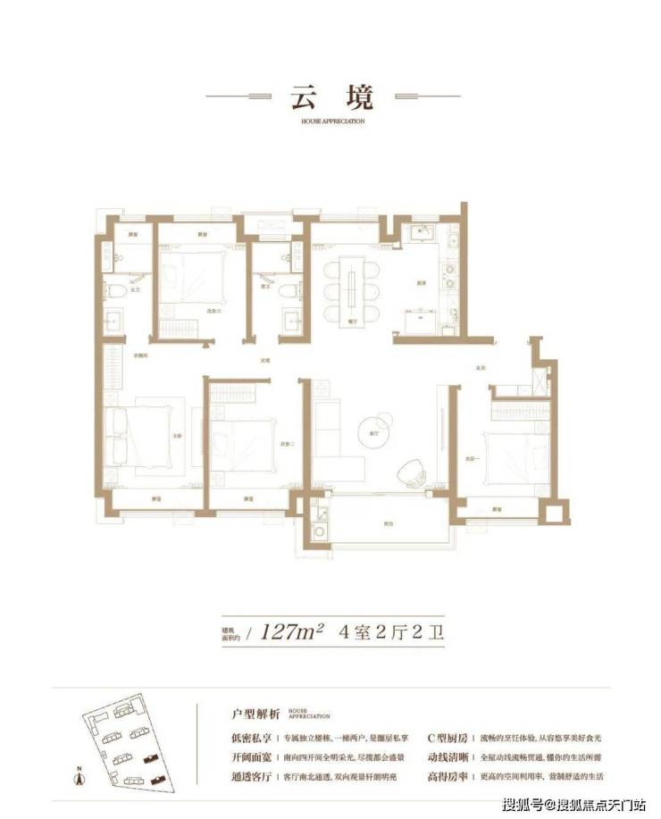 建筑约127㎡的「云境」空间内,四开间南向结合舒朗的方厅,大尺度的面宽让光赋予了生活更多的灵感。