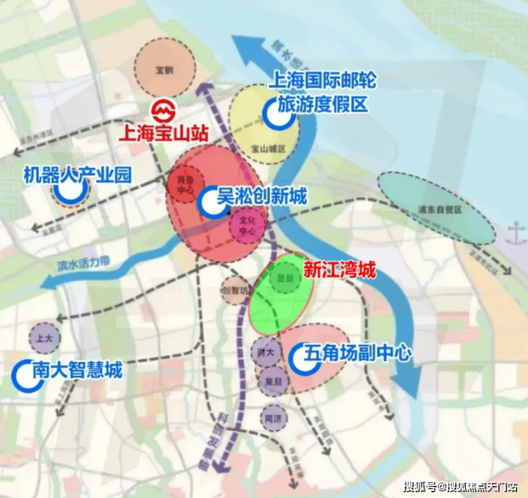 新江湾城的北翼,上海9大主城副中心之一的吴淞创新城,正在经历“北转型”科创产业大升级。新江湾城的南翼,另一个主城副中心江湾五角场,作为“金色中环发展带”,串起上海北部核心商务区,正从传统都市商圈向产学研复合城区变迁。