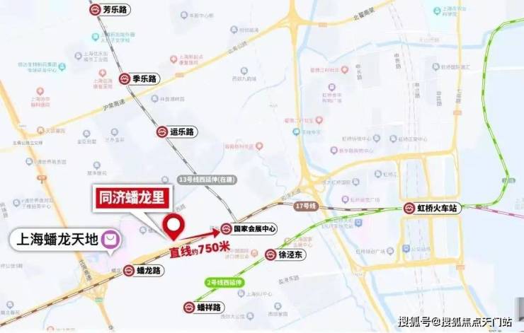 同济蟠龙里距离17号线蟠龙路站/国家会展中心站步行约750米,整个虹桥虽然新房众多,但真正能称得上步行直达地铁站的轨交盘,寥寥无几。
