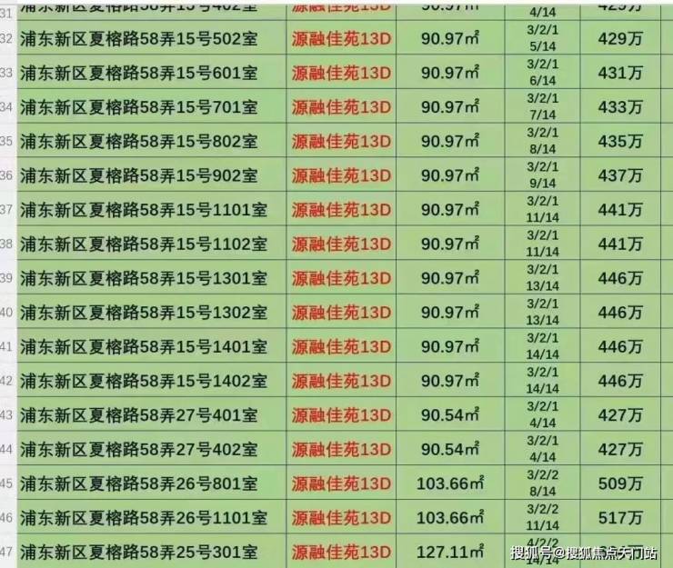 待售房源起拍价目表