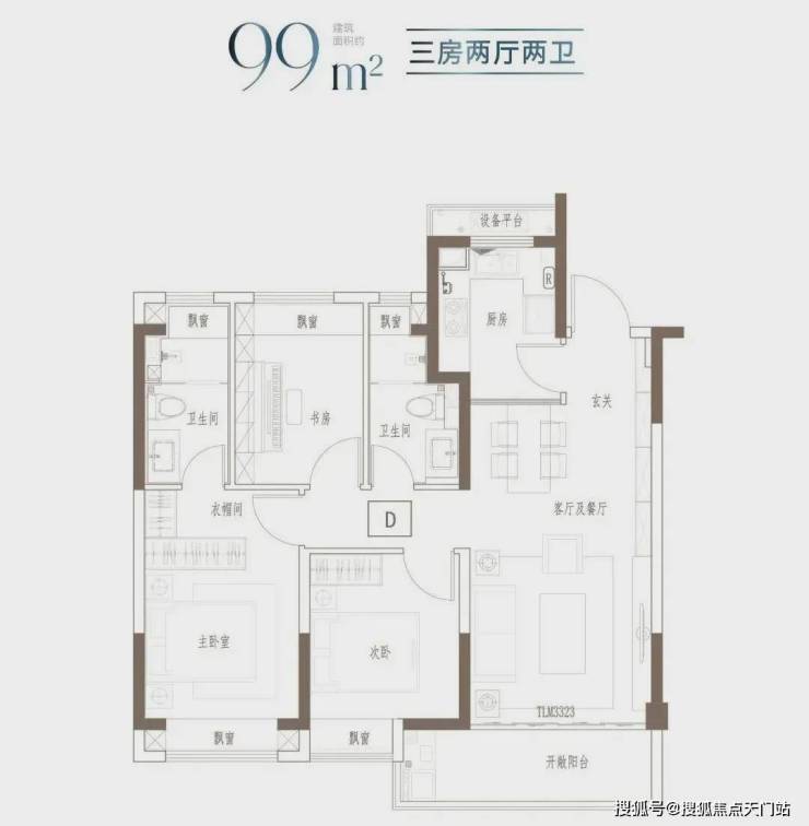 建面约91㎡-121㎡ 3房2厅2卫;这几个户型都是3房的设计,满足想一步到位的购房者。3开间朝南+客餐厅连通阳台+全卧室飘窗,以及套房式主卧设计+2卫,即使是三代同堂,也能让生活从容。