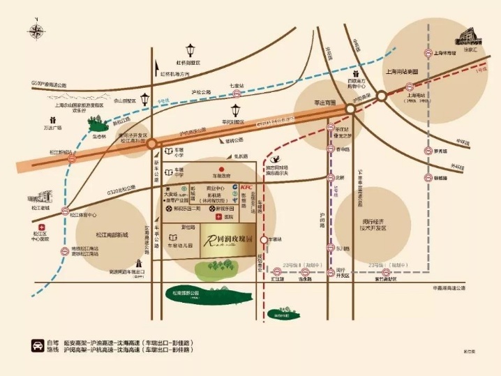 项目距上海市中心39公里、虹桥国际机场25公里、浦东国际机场68公里。周边有沪杭高速公路、嘉金高速公路、320国道、新车、车亭、北松公路、沪杭铁路、轨道交通22号线等,320国道和北松公路交叉穿越车墩腹地,轨道交通22号线是上海轨道交通体系重要线路,连接起上海南站、莘庄、车墩、金山卫等重要区域