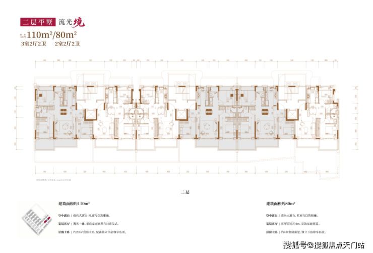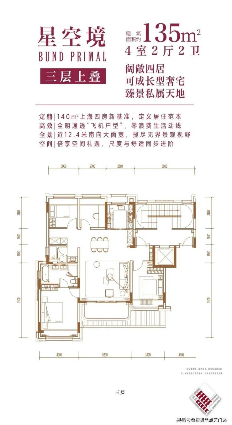 从内部空间体系来看,地上三层,层高分别是3.6米、3.3米和3.3米;每个单元一梯两户,每户均拥有类独立电梯厅;一楼带地下室及庭院,并通过创新退台式设计为二楼和三楼打造私家空中花园,形成户户有花园的墅居生活方式。