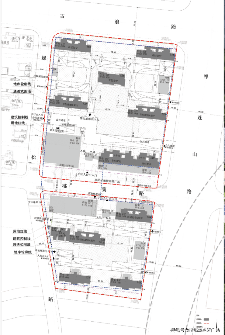 项目地块东至祁连山路,西至规划绿松路,南至常和路,北至古浪路。拟建10栋11-17层住宅, 另有部分商用及配套用房。