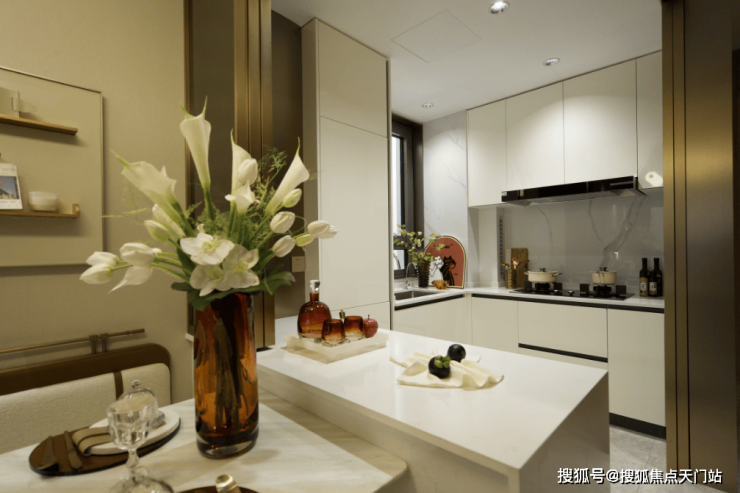 厨房是开放式的(也可封闭),不仅拉大了视觉尺度,更让你在做羹汤时,能与客厅里的家人随时互动,打破了原本厨房的“孤独感”, 赋予更多情感交流。