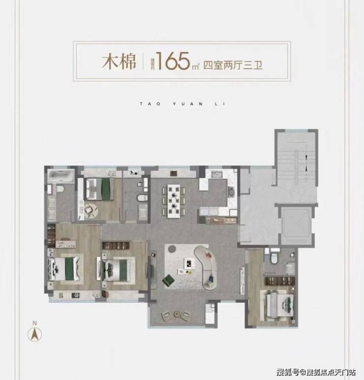 主力户型建面约105㎡3房、165㎡4房