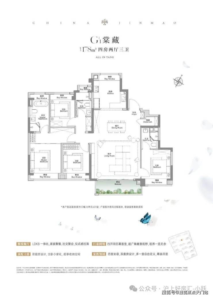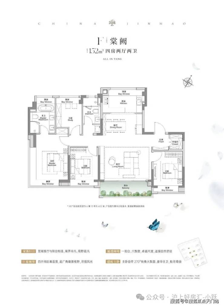 全景舱艺境美宅,标准层约3.1米层高、270度全景飘窗、LDKB一体化、南向跑道阳台、超12米南向全屏开间,无限视野尽收眼底,还有超金喜的满配精装,全上海只有央企金茂才能做得到。