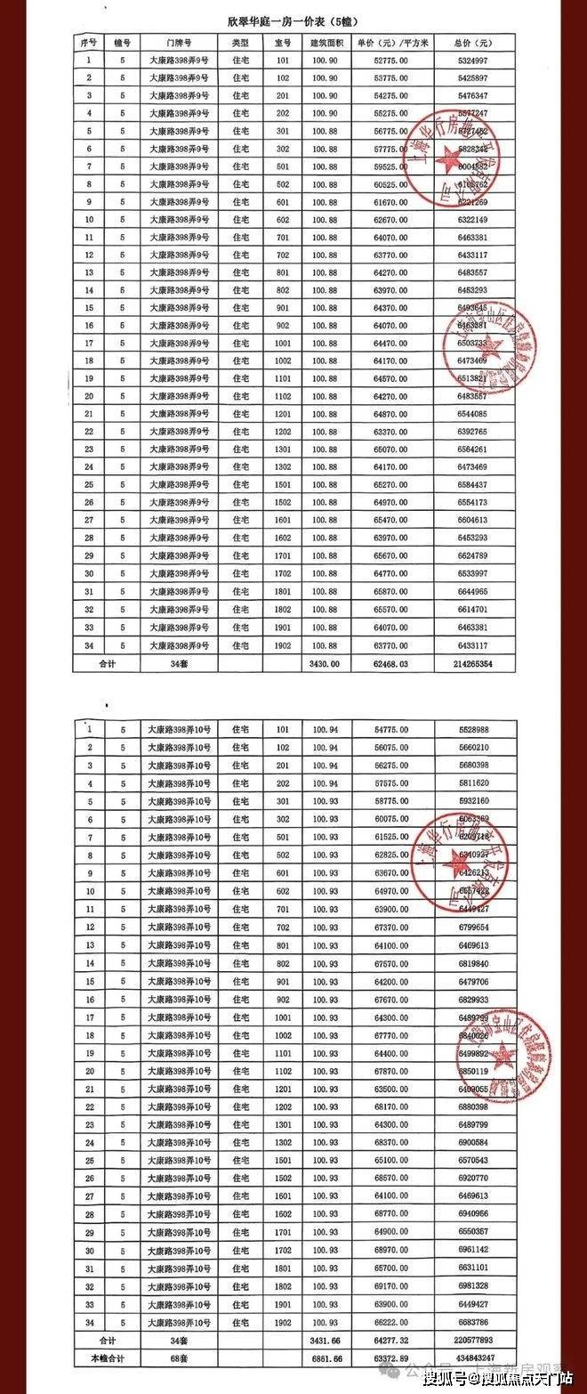 一房一价表如下: