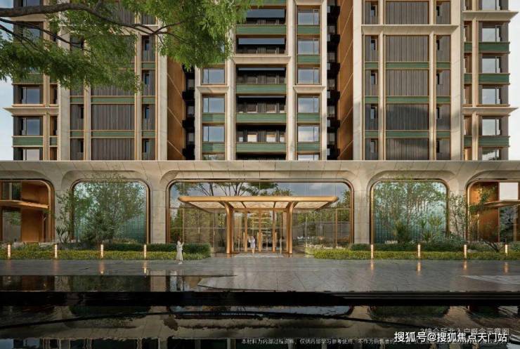 取意豫园中式园韵,打造约 99 米隐奢入口空间结合独立的车马院,风雨廊道与人车分流独立双入口,带来尊贵的归家体验。