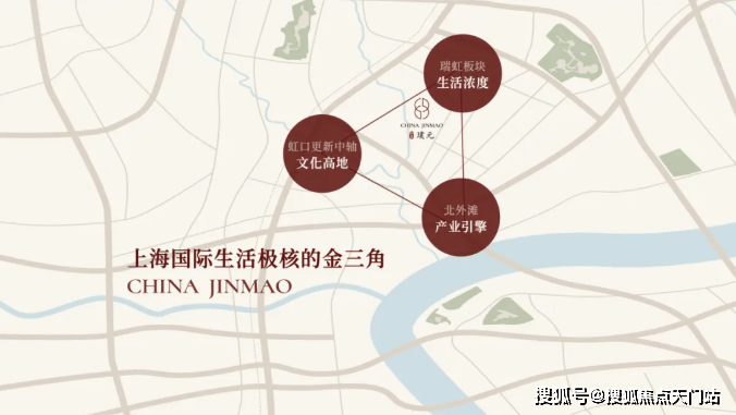 金茂璞元落子上海虹口区瑞虹新城核心区,精准占位外滩-北外滩-陆家嘴黄金三角辐射圈,距黄浦江仅约八佰米,是瑞虹新城30年城市更新的收官巅峰之作,兼具成熟配套与发展红利双重加持。