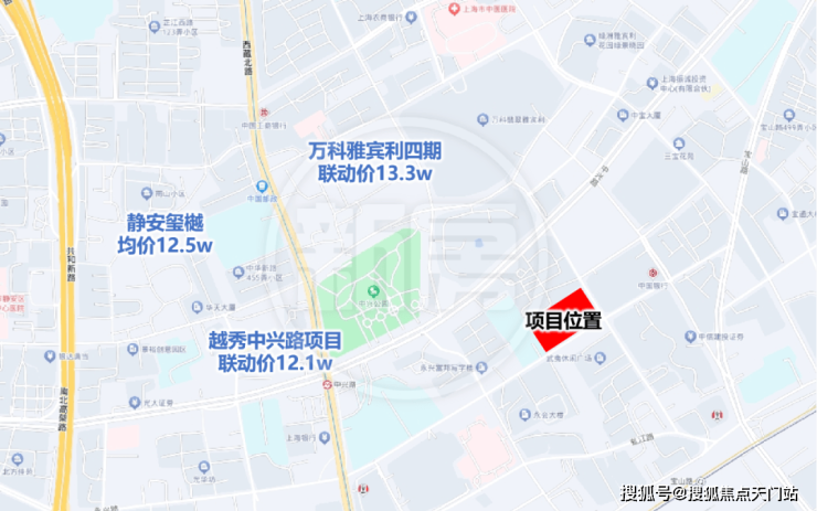 该地块东至公兴路,南至永兴路,西至静安区闸北第三中心小学,北至象山小区;该板块是静安区新房的主力供应区域, 地块周边待上市新盘有越秀中兴路项目(联动价12.1w)、静安玺樾12.5w、雅宾利四期(联动价13.3w)等项目。