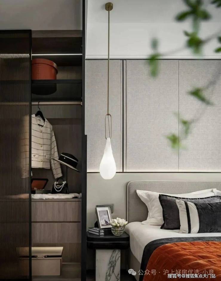 主卧床背景墙进行了软包处理,省去了业主未来二次装修的时间、精力跟成本,更好的给业主一个舒适且高颜值的家。