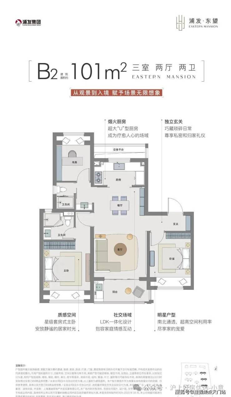 B2户型则是含金量非常高的南北通透飞机户型,动线更加合理。