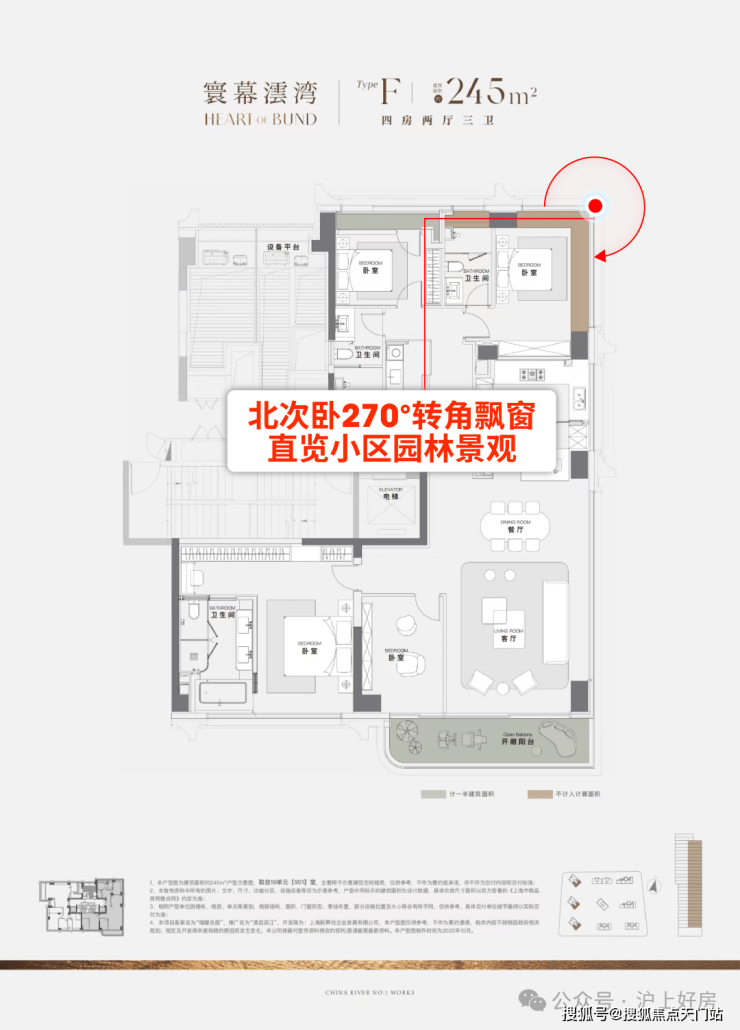 ⑤北次卧套房270°转角飘窗,直览小区园林景观!