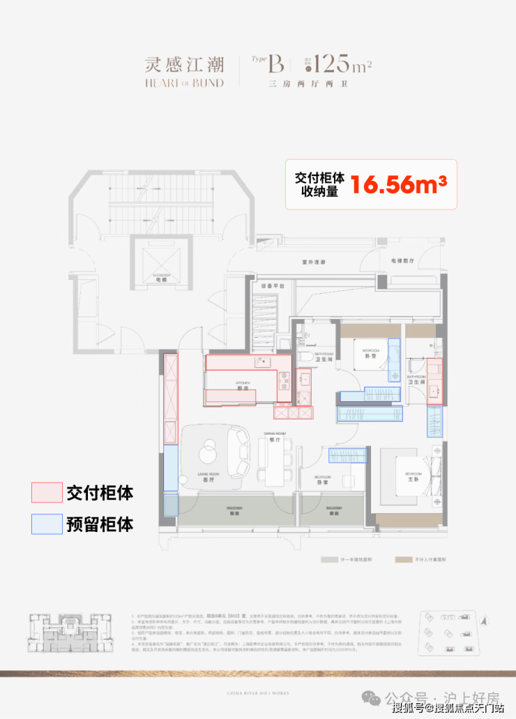 收纳也是项目户型的重点,据沪上好房统计,项目125㎡3房边套户型的整体交付柜子+预留衣柜,收纳空间可以达到约20.04m³(若以28升的行李箱丈量,它能从容收纳200个);中间套户型收纳空间也能达到约16.56m³!
