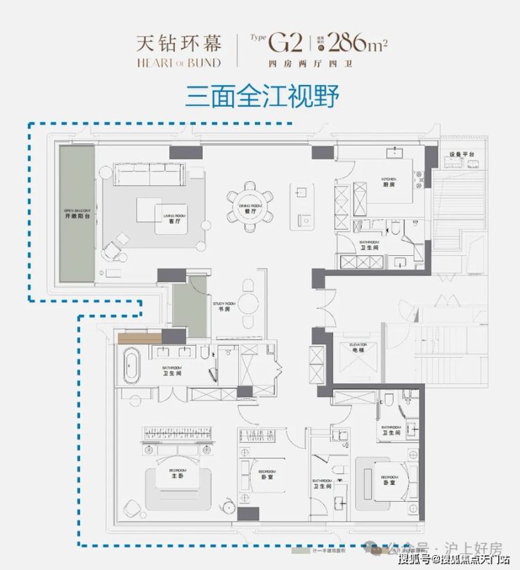 澐启滨江「天钻环幕286」-上海滨江大平层的终极形态,至此绝版,堪称2025年上海楼市惟一三面瞰江的滨江头排藏品。
