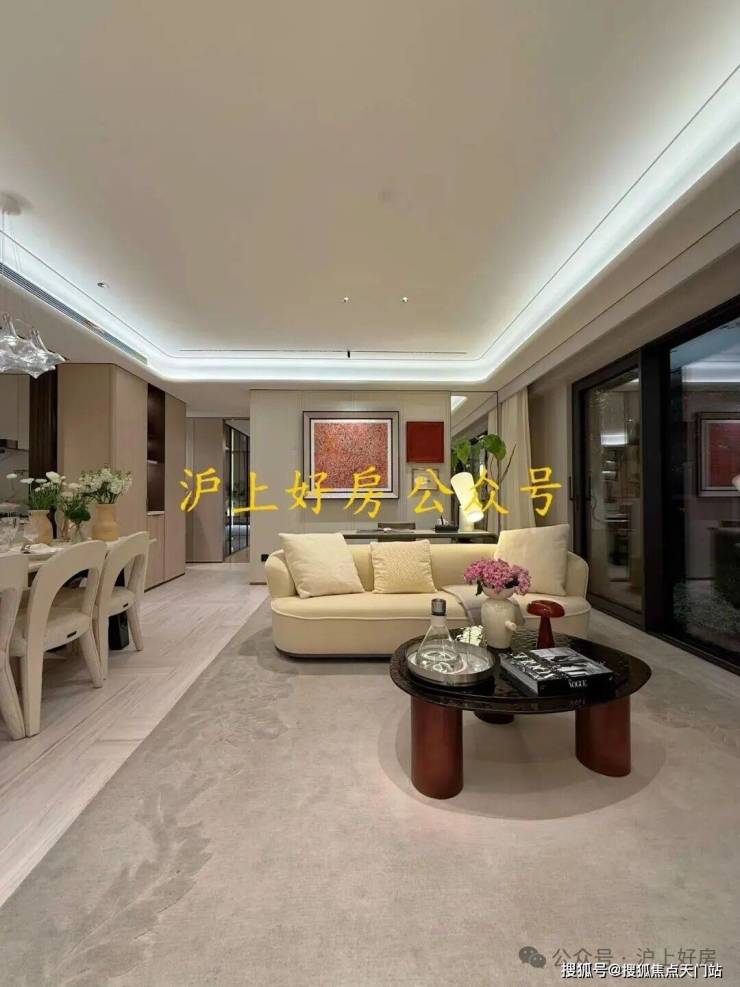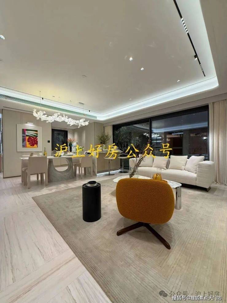设计背书由问鼎国际大奖的著名设计师吴滨操刀,延续其“汤臣一品5亿顶复”的“摩登东方”理念。以黄浦江为灵感,营造“阅尽千帆后的宁静与松弛感”。通过8.5米南向宽厅、270°环幕玻璃、无冗余装饰的减法美学,让空间如江面般舒展,视野极度开阔。