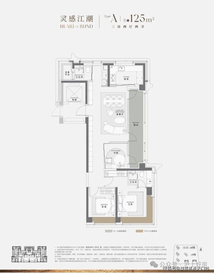 先看建面约125㎡户型: