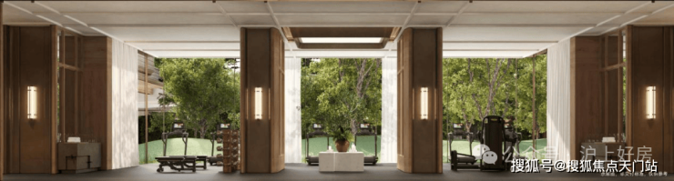 会所环绕着中心水苑展开,泳池、健身、瑜伽、私宴与茶室都被包裹在其中;连地下空间也被赋予自然的渗透,约30米面景的中央车站大厅,将光与绿意引入地库,让归家像步入一座埋入自然的殿堂。