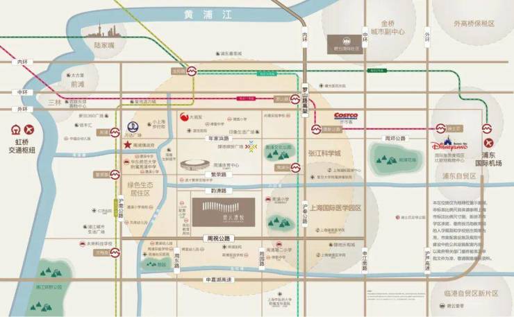 沪奉公路链接外环、中环、罗山高架以及申嘉湖高速等多维立体交通直达内环,周浦与浦东临港和龙阳路无缝连接,张江、陆家嘴、临港、迪士尼度假区,便捷直通畅达;
