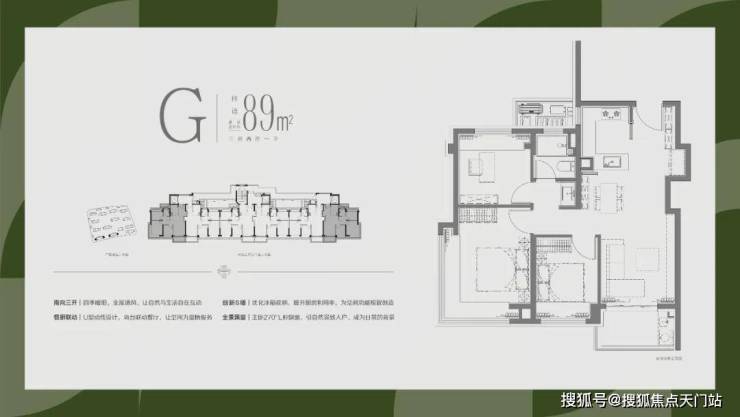 1、全部南向大面宽设计,保证最为出众的采光和视野需求;