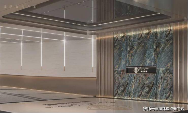 项目车库采用贯穿式鱼尾灯坡道和超耐磨地坪,过道全部采用精装吊顶,地下管道和局部区域进行二次包裹!尤其惊艳的是项目的豪华车马厅, 采用水磨石、水晶漆、铝饰面、大板砖、立柱石材包边、门禁系统三合一!