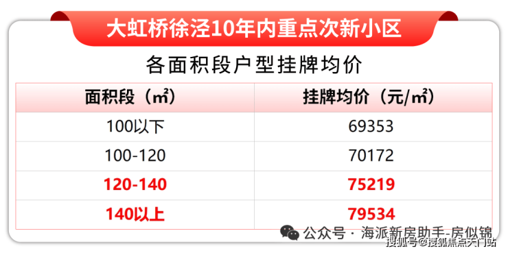 据链家网最新挂牌数据显示,目前徐泾10年内次新重点小区100㎡以下户型挂牌均价已经跌破7万/㎡。但140㎡以上的大户型却仍然有近8万/㎡的挂牌均价,溢价小户型近15%!