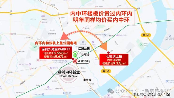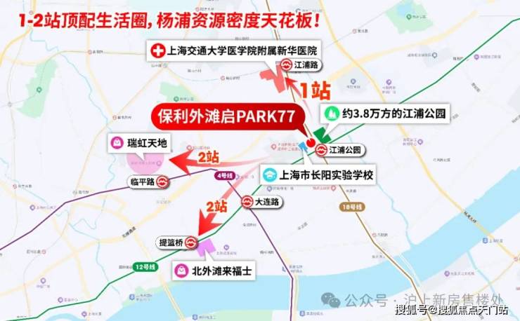 杨浦内环12/18号线江浦公园站双轨上盖, 保利外滩启PARK77火热在售中!总价1200万起!