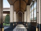 约40米奢阔归家门庭,历经近30版建筑方案反复修改,60版细节比例研究精筑,奢选精致石材搭配金铝板,营造归家雅序。