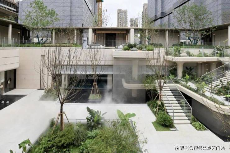 点睛之笔在于4层悬浮式阶梯,设计理念据说来自全球十二大奢华酒店之一的 迪拜丽晶公寓 ,每一个观景露台都种植着不同的植被,一步一景, 更重要的是,不同的露台对应着不同的观景视野点,将不同高度的下沉式庭院景观,通过极其优雅的方式传递给了业主。 这个归家体验可以说是拉满了!