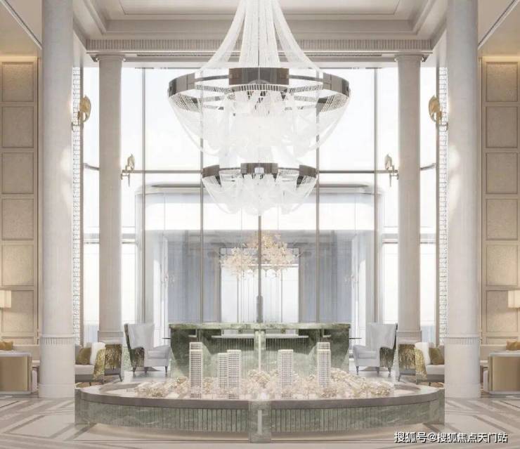 基座更是采用 大面积石材搭配 艺术玻璃及 古铜色金属窗框,辅以奢石、艺术等点缀,从上到下,处处皆是奢华质感。