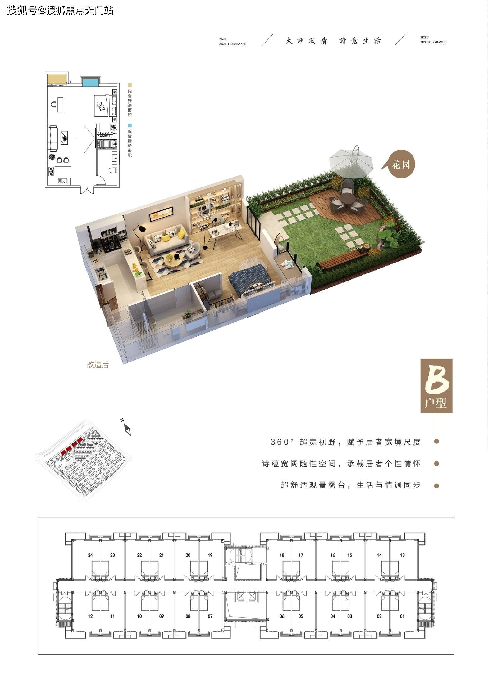 一楼送花园(20㎡~45㎡花园),二楼送阳台,三楼送阳台+阁楼