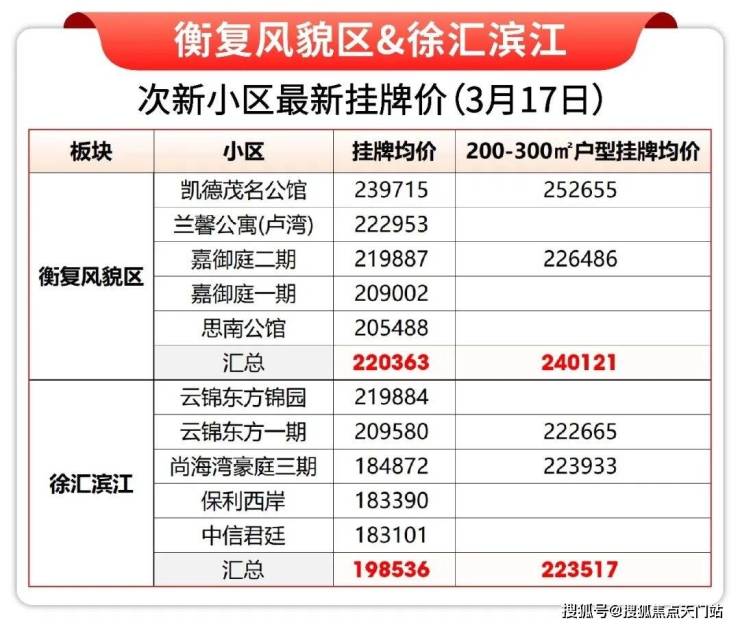 衡复顶豪的挂牌均价超过22万/㎡,200-300㎡的改善大户型挂牌均价更是超过24万/㎡!