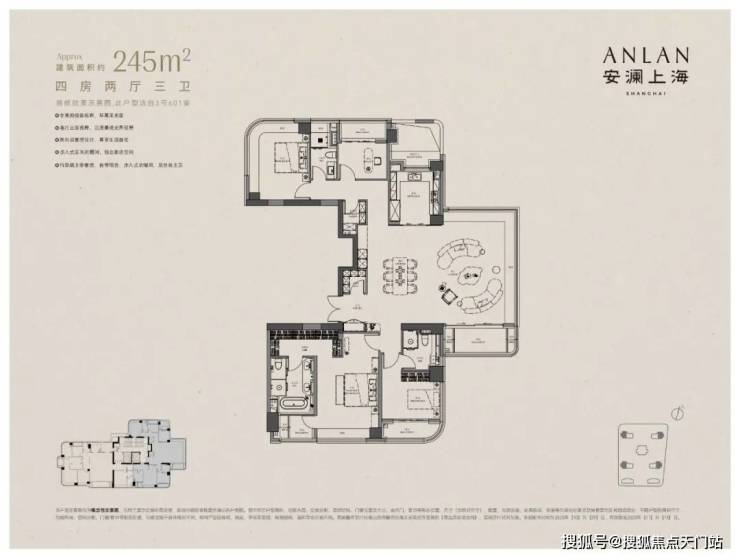 顶豪向来少谈“附赠”,但安澜上海直接把实得面积拉满。作为新规后首个三阳台顶豪户型, 主卧阳台可满足男主人品茶、女主人瑜伽的闲情; 北房间阳台让舒适四房的实用性再升级。
