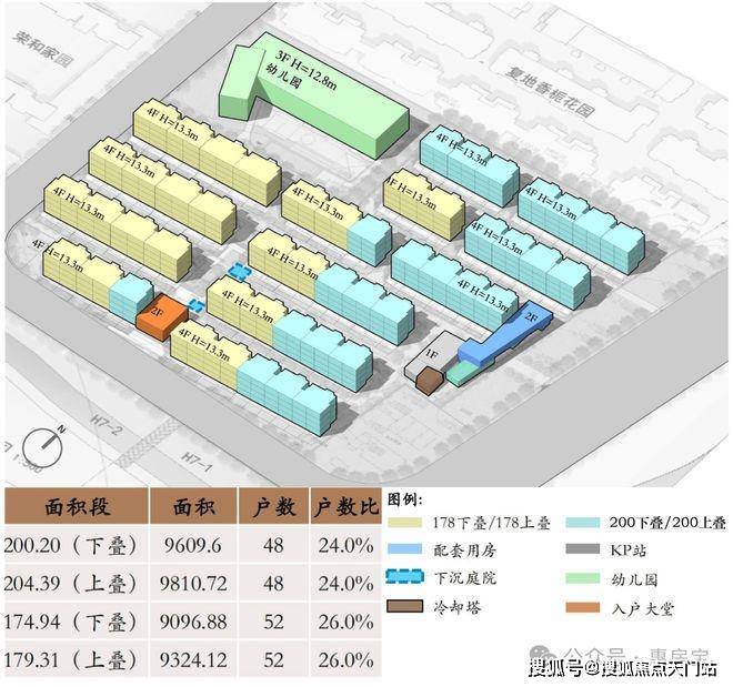 该地块拟建设13栋4F叠加别墅,有4个主力户型,包括建面约178㎡上、下叠,建面约200㎡上、下叠。
