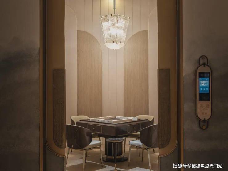 私宴厅&棋牌室承载了业主宴请、聚餐、洽谈、品茗、娱乐等多元社交场景。私宴厅当中悬挂的石材,来自项目团队多番挑选,来自一个奢石展馆里的孤品,不仅拥有昂贵的蓝色色泽,天生的羽毛状纹理更是罕见!