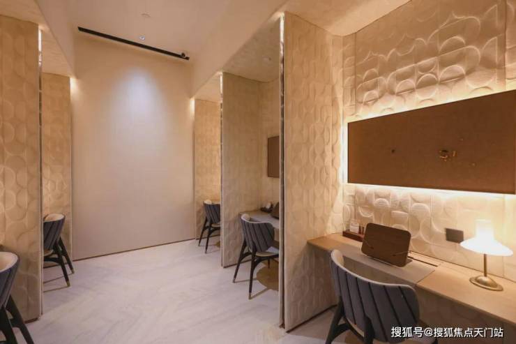 健身房的一大亮点是延续了项目对“她享主义”的设计,除了传统健身器材外,还打造了女性训练区,不仅设计风格更柔和,专属女性的拉伸区也更加复合女性健身习惯。