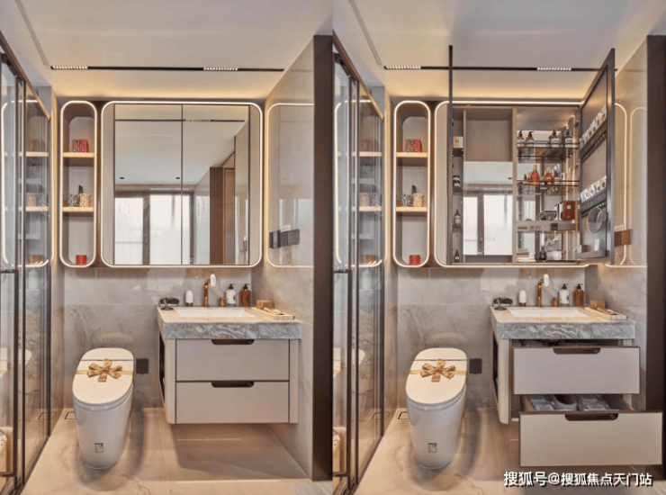 保利天奕特别关注到女性的生活需求,专门在卫生间配备了 科勒美颜龙头、美妆镜柜、美妆冰箱,采用“ 顶+面双补光照明”,能把“女本位”需求做到如此细致,目前没有几个项目能做到!