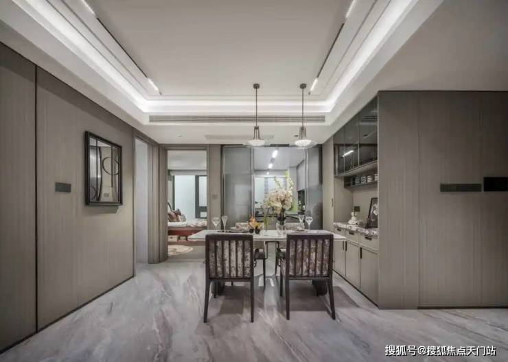 餐边柜配上玄关柜同款雪山飞狐奢石;配上1m8餐桌空间也绰绰有余。