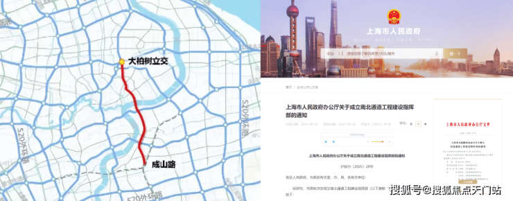 9月26日,上海市政府官宣:决定成立南北通道工程建设指挥部,为南北通道规划按下加速键;与此同时,军工高架路正式通车。(信息来源:上海市政府官网)