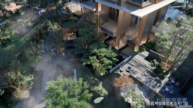金茂·璞元社区整体抬高1.3-1.4米,下沉庭院景观高差近7米。把峡湾、密林、溪涧、山丘都纳入其中!漫步其中,路过叠级水瀑,或者游览苔藓林园,会发现真正璞实的设计,会让位于自然的原生意境