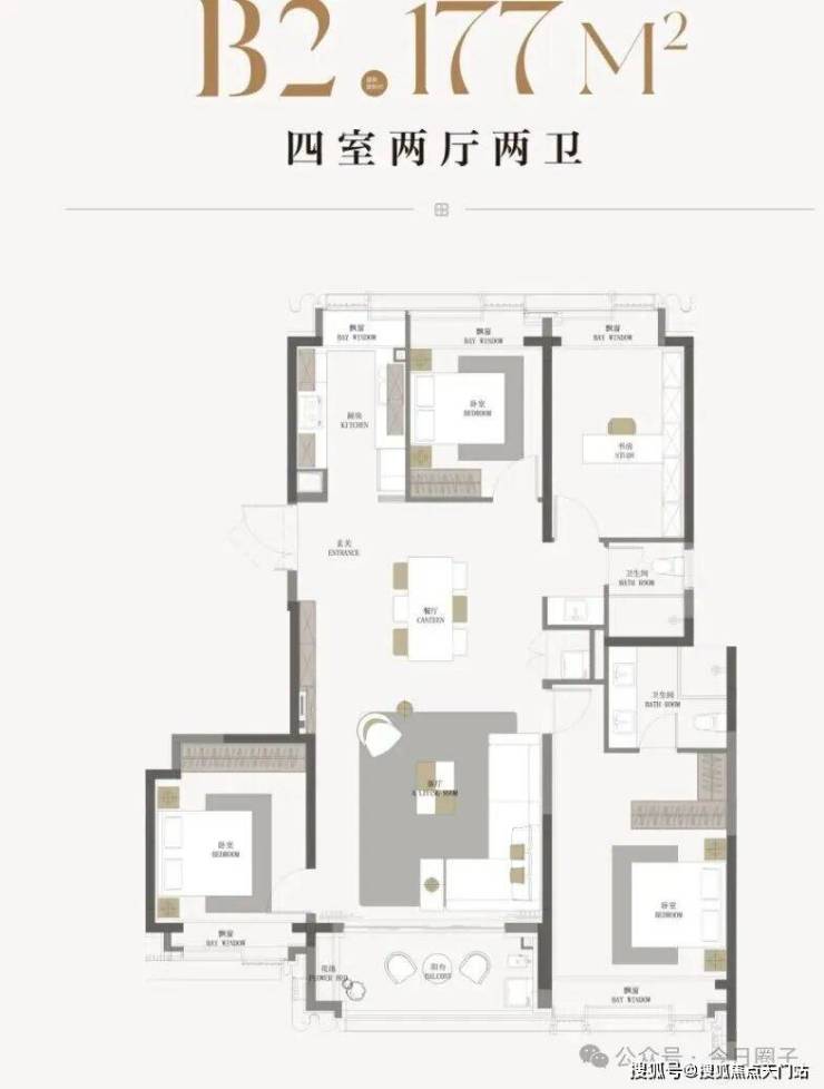 建面约177㎡四房户型,6重采光面,室室皆阳,是对于预算更高的客户,招商给出的又一全新选择。
