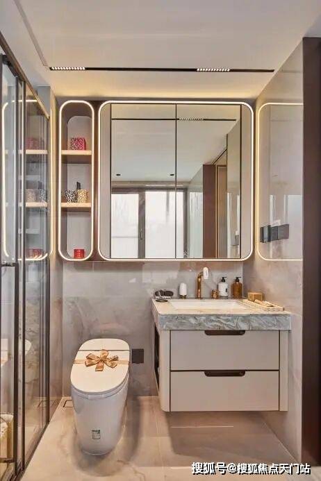 保利天奕特别关注到女性的生活需求,专门在卫生间配备了科勒美颜龙头、美妆镜柜、美妆冰箱,采用“顶+面双补光照明”,能把“女本位”需求做到如此细致,目前没有几个项目能做到!