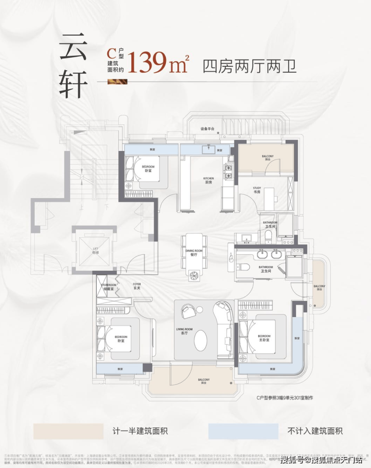 项目约109㎡户型,实际使用面积堪比常规约130㎡户型;约139㎡户型,使用效果接近常规160㎡大平层。相当于少花近20㎡建筑面积的钱,却能享受到同等的空间尺度。