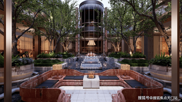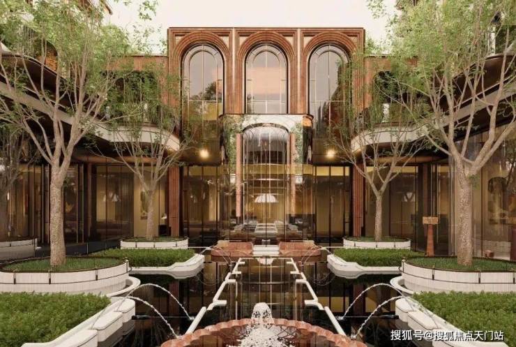 项目采用“围合+轴线”布局,重现了海派里弄的围合感与街区韵律,暖色贝金米黄石材搭配红洞石墙面,融合性新海派风格在前滩元境中获得系统性的诠释,放佛一座微型衡复风貌区,唤醒城市记忆。